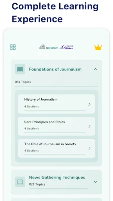 • Structured Content: Learn Journalism step-by-step, from basic principles to advanced techniques.