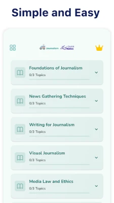 Explore Journalism with our comprehensive app, designed to make media concepts simple. Whether you're a student, aspiring journalist, or enthusiast, this app provides clear explanations, interactive questions, and a complete offline experience.